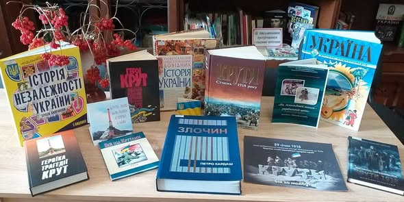 До Дня пам'яті героїв Крут В бібліотеці розкрито книжкову виставку "Крути - наш біль, наша історія і слава" та підготовлено огляд літератури "Обірвали Крути їх стрімкий політ".